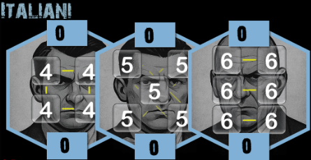 - en haut de la tuile, son score de combat de base (Nombre de pions x Valeur du Gangster),