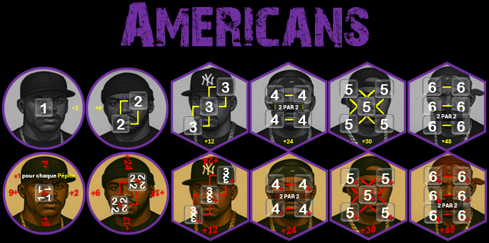 Quand vous améliorez certains Gangsters (1, 2 et 3), vous faites pivoter la face active dans le sens des aiguilles d'une montre à mesure des améliorations.